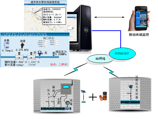 為保證供水工作的科學性依靠現代計算機通信技術和傳感技術實施對供水管道的無人化遠程實時監測,并且能夠自動傳輸到上面各級主管部門,監測輸水管道、城市供水管道的壓力、流量信息;及時發現管網故障,提高維護效率、降低損失,保障輸水、供水質量,達到科學預警,減少成本,提高效率的目的