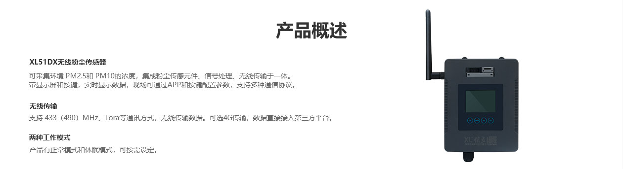 XL51DX無線粉塵傳感器,可采集環(huán)境 PM2.5和 PM10的濃度,集成粉塵傳感元件、信號(hào)處理、無線傳輸于一體。帶顯示屏和按鍵,實(shí)時(shí)顯示數(shù)據(jù),現(xiàn)場(chǎng)可通過APP和按鍵配置參數(shù),支持多種通信協(xié)議。