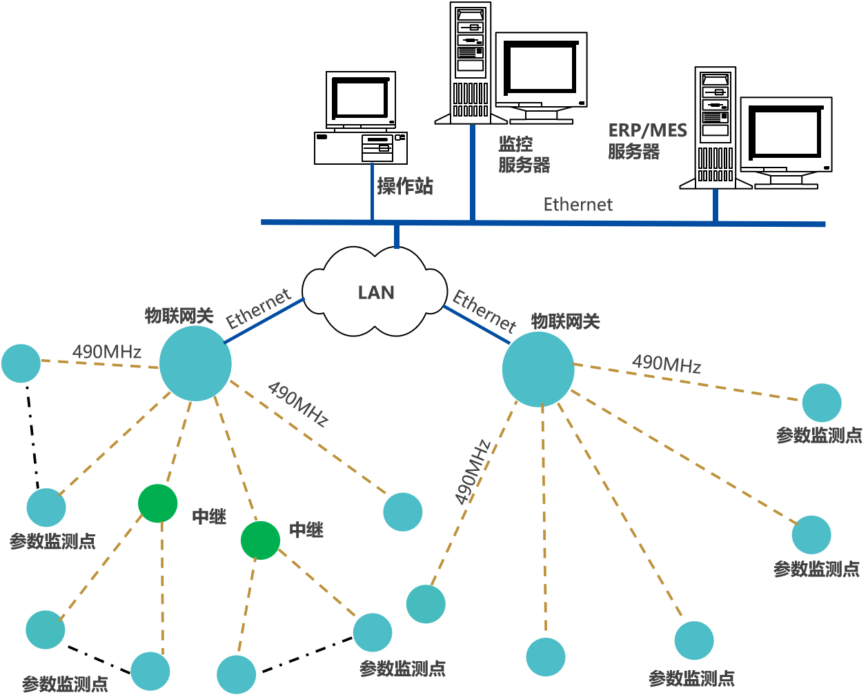 物聯網關通過無線方式,獲取監測點的數據,通過局域網,將數據推送至監控服務器