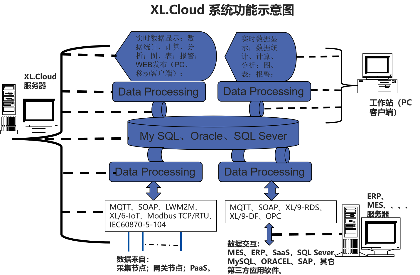 支持MQTT、LWM2M、SOAP,XL/6-IoT、XL/9-DB、XL/9-RDS,等等通信協(xié)議,并可和第三方數(shù)據(jù)庫,Oracle、SAP等交換數(shù)據(jù);