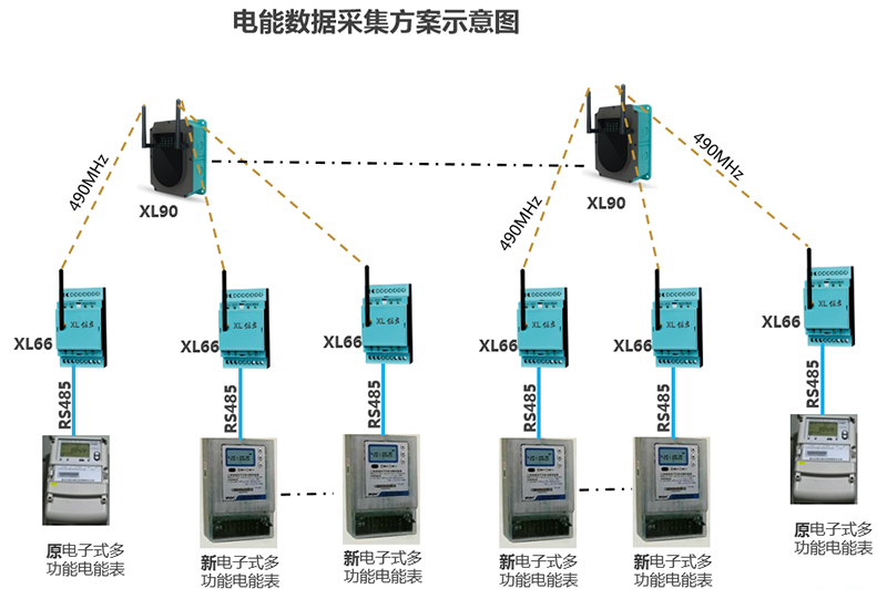 已安裝有,電子式多功能電能表,的電能監(jiān)測點(diǎn)(共有4個(gè)監(jiān)測點(diǎn)),每個(gè)監(jiān)測點(diǎn)配置1臺(tái)XL66智能轉(zhuǎn)換器,從電能表讀取用電數(shù)據(jù),上傳至XL90物聯(lián)網(wǎng)關(guān)