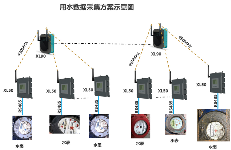 在每個(gè)用水量監(jiān)測點(diǎn),配置1套XL50無線采集器