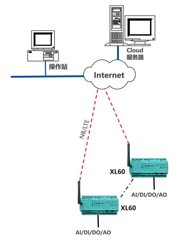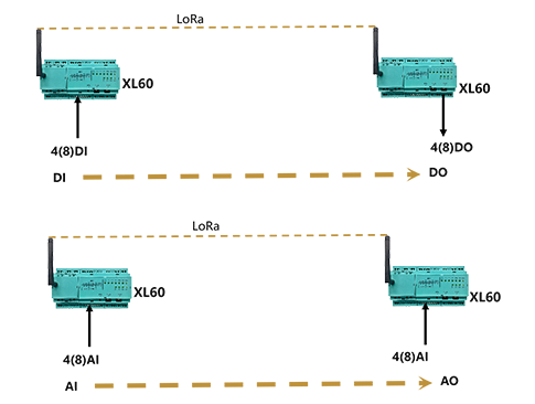 兩臺(tái)XL60可實(shí)現(xiàn)模擬、開(kāi)關(guān)信號(hào)透?jìng)?/span>。