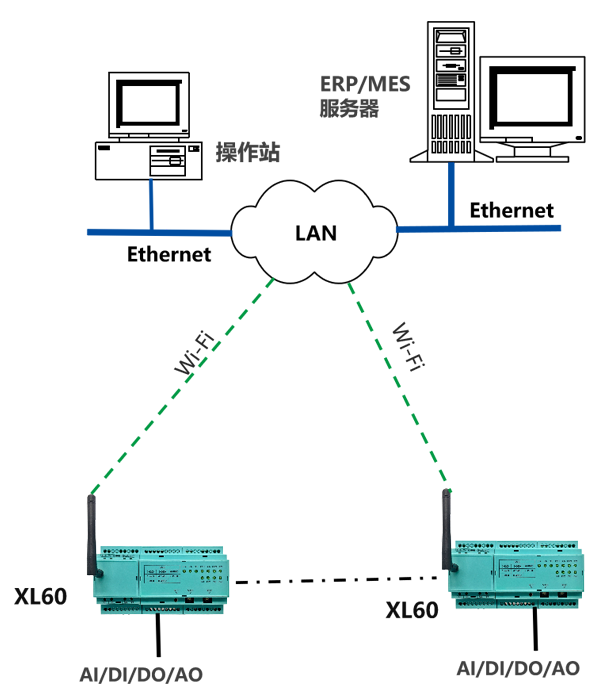 應(yīng)用場(chǎng)景:工廠車(chē)間有獨(dú)立的工業(yè)據(jù)數(shù)據(jù)Wi-Fi網(wǎng)絡(luò),或是Wi-Fi網(wǎng)絡(luò)可用于傳輸數(shù)據(jù);采集車(chē)間機(jī)器設(shè)備運(yùn)行信號(hào)、工藝參數(shù)(溫度、壓力、位移、轉(zhuǎn)速、計(jì)數(shù)、產(chǎn)量......),通過(guò)LAN直接推送數(shù)據(jù)至監(jiān)控服務(wù)器;
