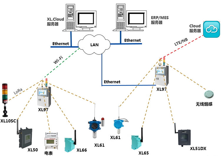 3、無線煙感XLSD,通過無線方式,上傳煙感的數(shù)據(jù),至工廠數(shù)字化平臺(tái),進(jìn)行更高層級(jí)的數(shù)據(jù)分析及機(jī)器生產(chǎn)運(yùn)行管理;