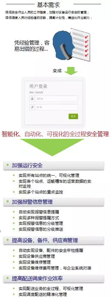 實(shí)時動態(tài)掌握儲罐運(yùn)行數(shù)據(jù)、車輛罐體運(yùn)行數(shù)據(jù)、車輛行駛數(shù)據(jù)、客戶加氣數(shù)據(jù)、客戶用氣數(shù)據(jù)等;實(shí)現(xiàn)設(shè)備遠(yuǎn)程無線實(shí)時監(jiān)測、控制及運(yùn)行異常預(yù)警、報警等。