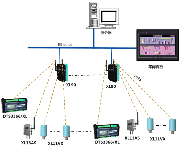 基于XIoT技術(shù)的回流爐運(yùn)行狀態(tài)數(shù)據(jù)集系統(tǒng),選擇DTSD3366/XL電力監(jiān)測(cè)儀表,XL13AS無(wú)線(xiàn)風(fēng)速傳感器、XL11VX無(wú)線(xiàn)振動(dòng)傳感器,采集回流爐運(yùn)行數(shù)據(jù),無(wú)線(xiàn)上傳數(shù)據(jù)至XL90物聯(lián)網(wǎng)關(guān):