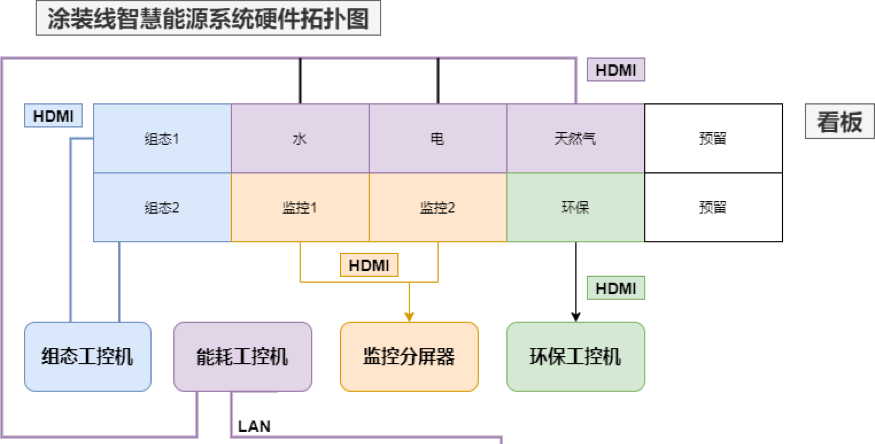 水、電、氣的消耗數據,除在能源管理服務器上進行展示、打印外,還要在展示大廳的65英寸的顯示器上進行展示。展示要求示意圖如下