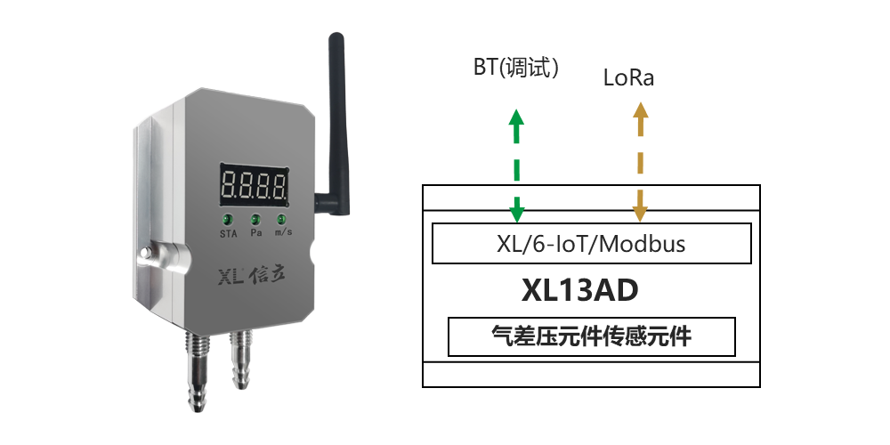XL13AD無線風(fēng)差壓傳感器,適用于室內(nèi)外壓差監(jiān)測,排風(fēng)管、空調(diào)管內(nèi)外氣壓監(jiān)測,支持LoRa上傳。