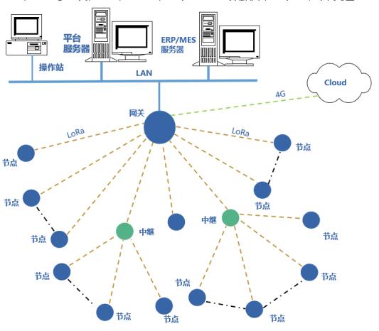 網關無線讀取所覆蓋區域內監測點的數據,進行處理、協議轉換,通過局域網轉發數據至MES、ERP、EMS等工廠數字化平臺,對數據進行分析,根據不同的報警閾值實現預警。