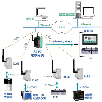 工廠、車間、園區等場所,有RS485或232通信接口的控制器、二次儀表、變送器等,可通過XL66實現無線聯網。
