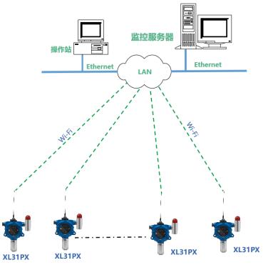 對(duì)于Wi-Fi覆蓋的區(qū)域,如化工廠內(nèi)的儲(chǔ)罐等場(chǎng)景壓力監(jiān)測(cè),可采用Wi-Fi傳輸方式,將數(shù)據(jù)通過LAN直接推送數(shù)據(jù)至監(jiān)控服務(wù)器。
