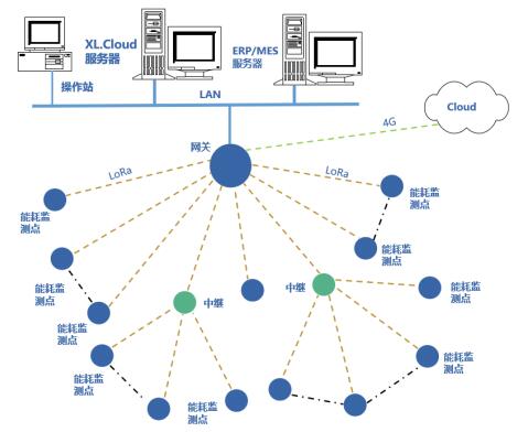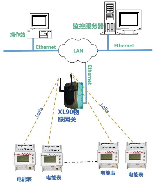 DTSD3366XX/XL無線多功能電能表獲取數據,通過LoRa無線傳輸方式上傳至XL90網關;XL90網關計算分析讀取的能耗數據,并通過Ethernet、Wi-Fi、4G等通信方式,將數據上傳至XLSCADA平臺。