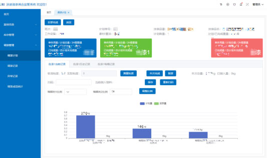 工藝智能匹配:根據所選產品的編碼,系統自動彈出相應的調漆工藝參數及流程,當某種原料倒多,系統自動根據工藝比例重新計算各原料所需量,減少操作員的手動干預,確保調漆的準確性。