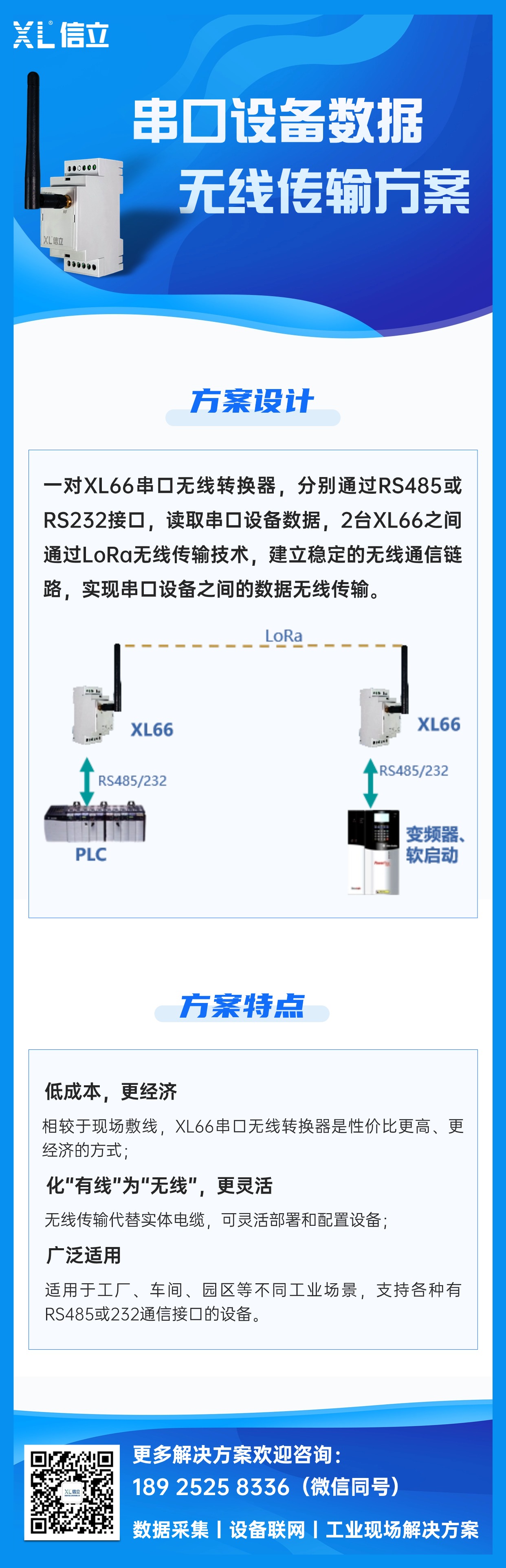2臺XL66串口無線轉換器,實現無線透傳功能,代替實體電纜,實現串口設備之間的數據無線傳輸,簡單、經濟!