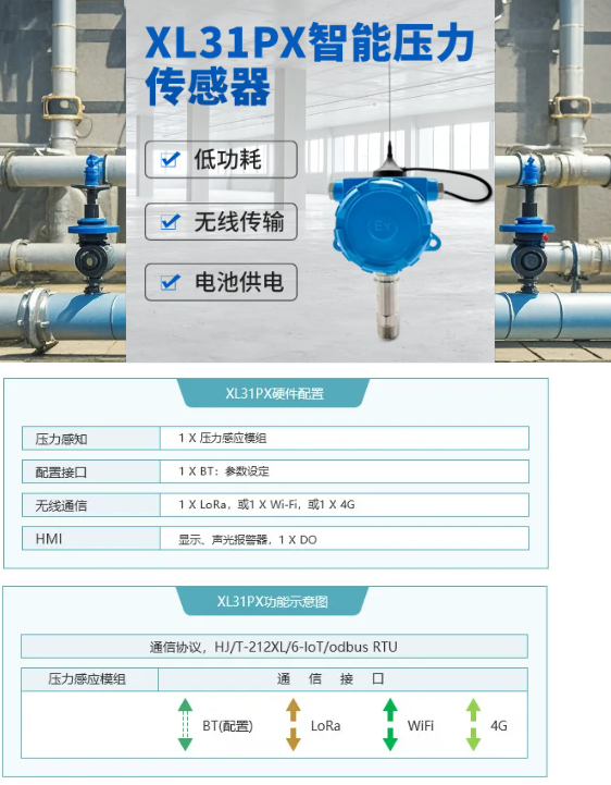 選擇XL31PX智能壓力傳感器部署在供水管網(wǎng)的關(guān)鍵節(jié)點,實時監(jiān)測當(dāng)前管道壓力。