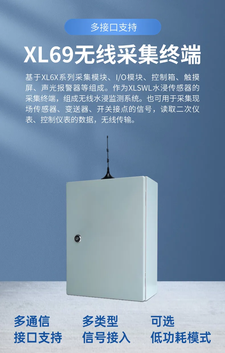選擇XLSWL水浸傳感器和XL69無線采集終端,組成無線水浸監測系統。